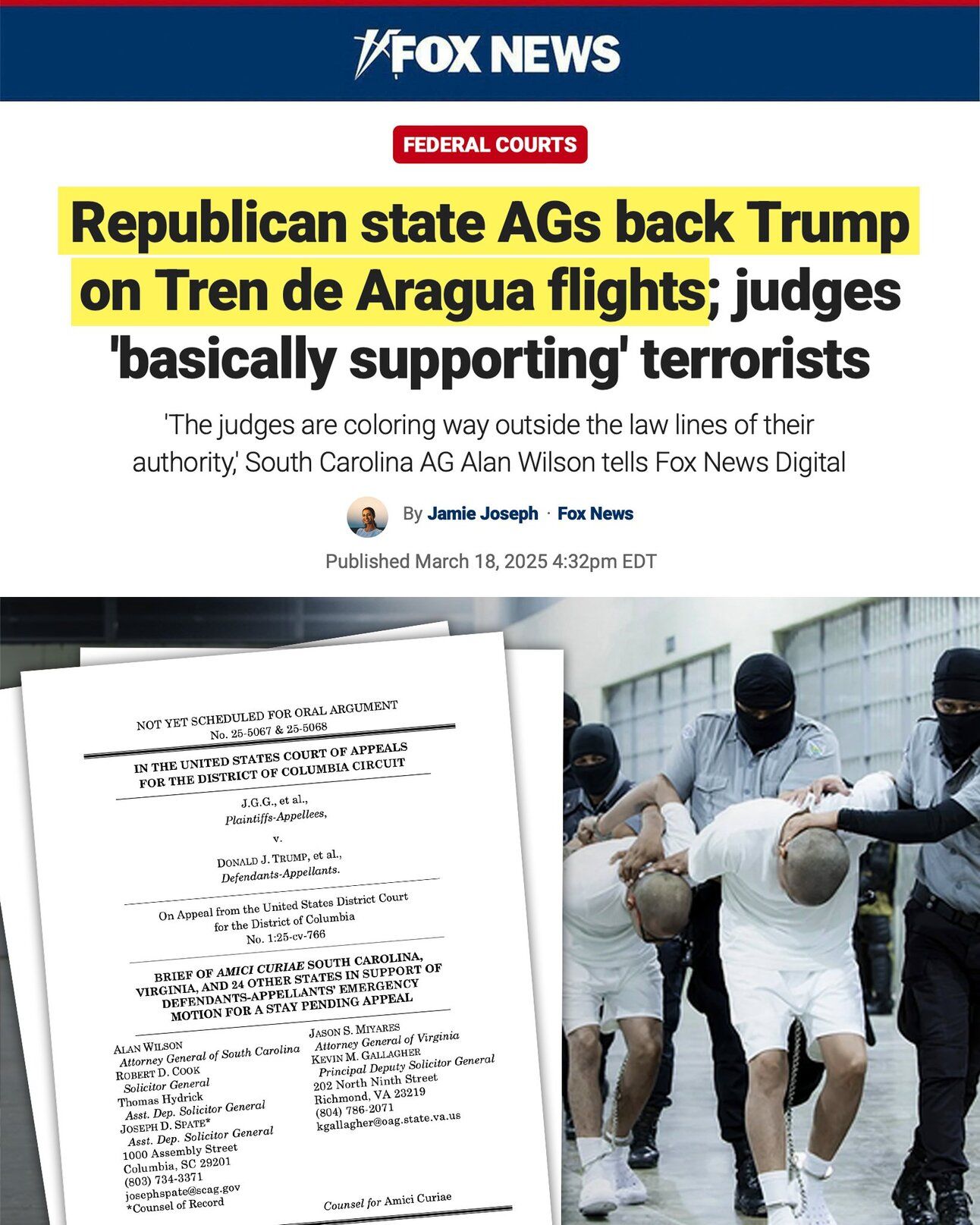 Republican AG’s are now backing Trump in the deportation of violent gang members like those a part of Tren de Aragua!