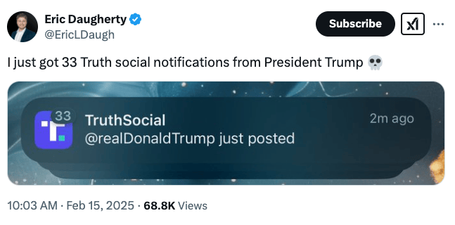 After originally posting this quote on Truth Social, he immediately sent it out on X, Instagram, and just about every other platform you can think of.
