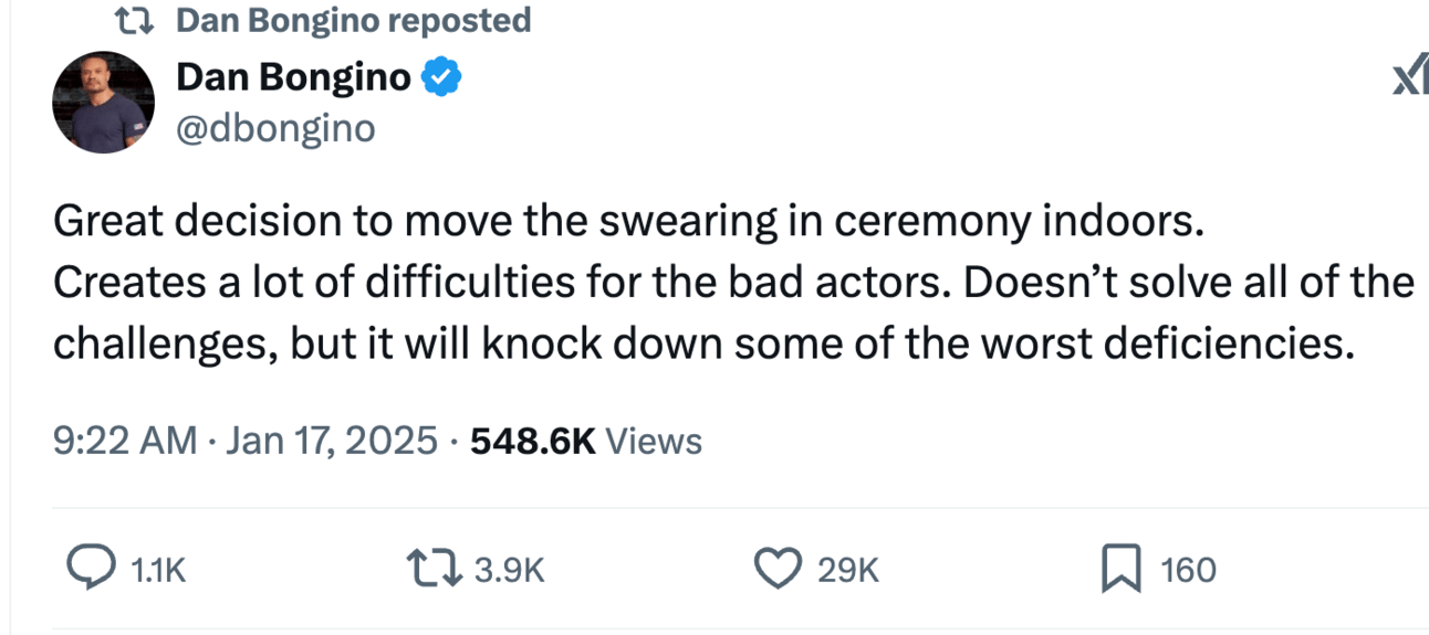 Who had ‘Inauguration venue change’ on their 2025 bingo card? I sure didn’t.