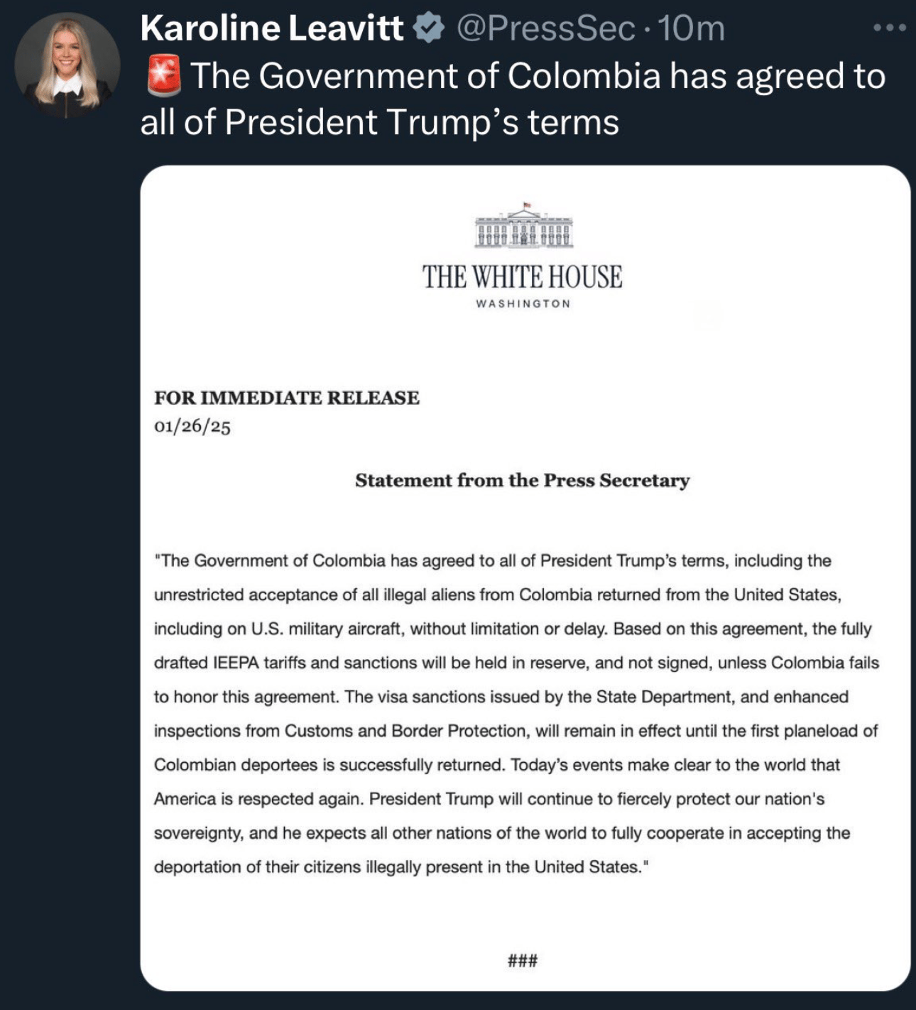 - 🇺🇸Trump Plays Bully Ball With Colombia After They Reject Deportation Flight
