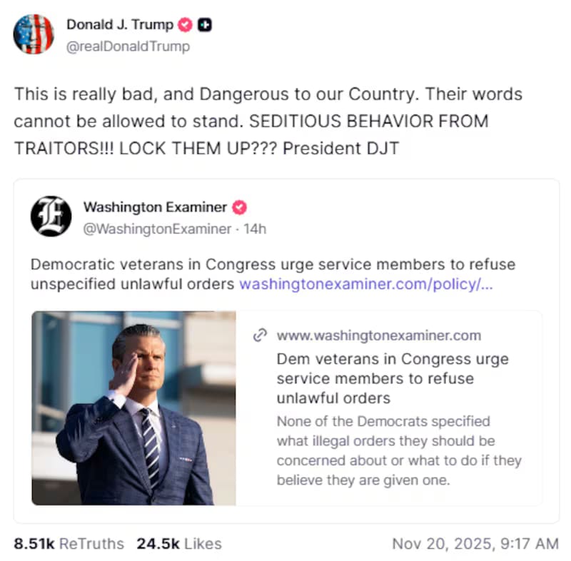 🚨 Trump Labels Six Democrats as Traitors
