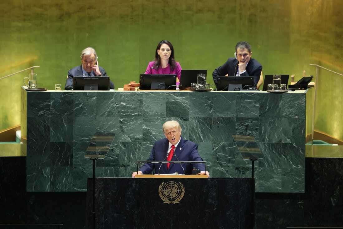 President Trump speaks during the United Nations General Assembly at the United Nations headquarters on Tuesday in New York City.
