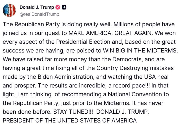 🎪 Trump Considers Pre-Midterm Republican National Convention