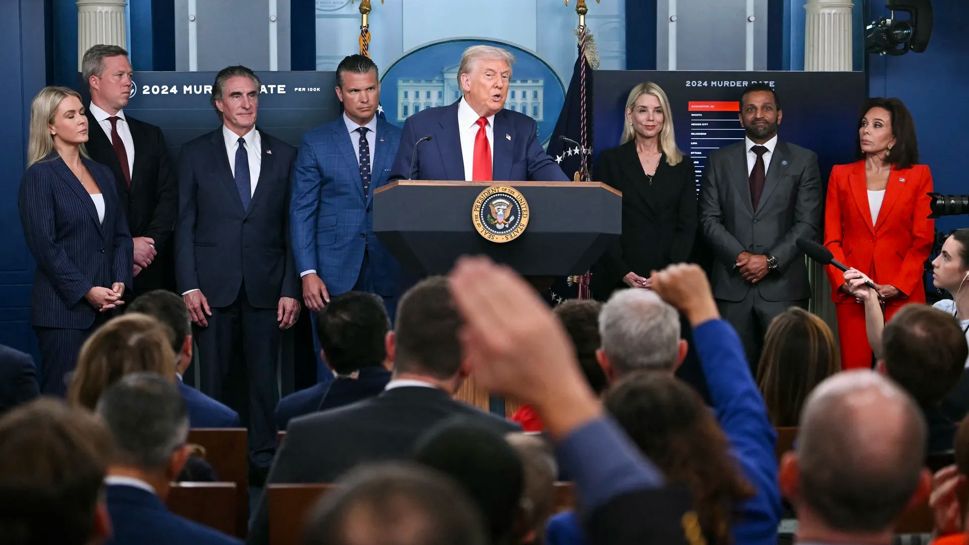 President Trump speaks during a news conference to discuss crime in Washington, D.C., at the White House.