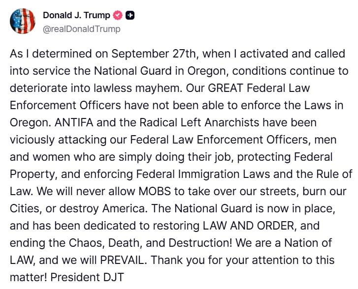 🪖 Trump Sends National Guard to Oregon Amid Unrest