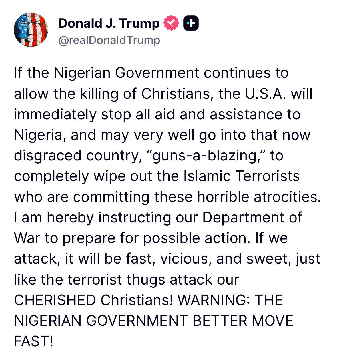 - 🇺🇸 Trump Threatens Military Action in Nigeria